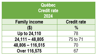Québec Child Care Credit Rates