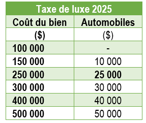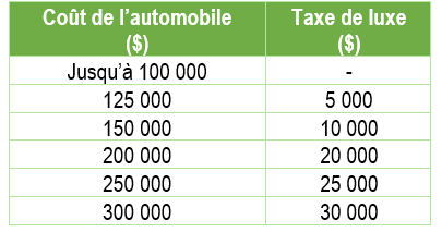 On constate que la taxe de luxe atteindra le maximum correspondant à 10 % de la valeur du bien pour les automobiles coûtant 250 000 $.