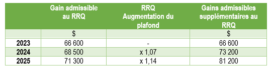 Jusqu’à maintenant, le maximum des gains admissibles (MGA) aux fins du RRQ correspondait au salaire industriel moyen, publié annuellement par Statistique Canada (71 300 $ en 2025).