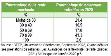 Il est à noter que seulement 2,8% des travailleurs ont droit à la rente maximale du RRQ tel que l’illustre le tableau qui suit :